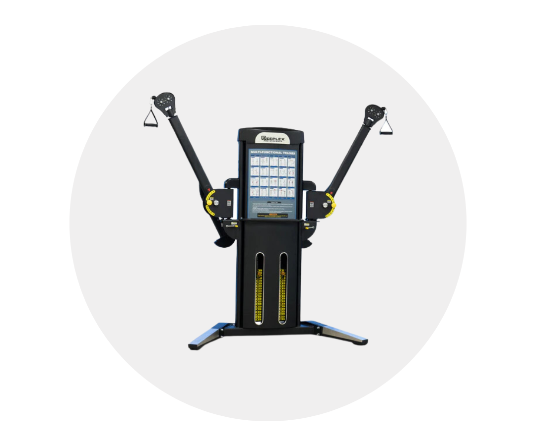 The multi-station gym allows you to train your entire body using stations such as lat pulldown, leg press attachment, weight plates, smith machines, and various cable crossover workouts.