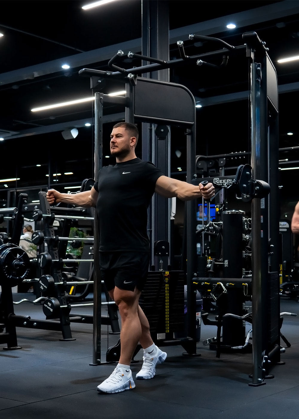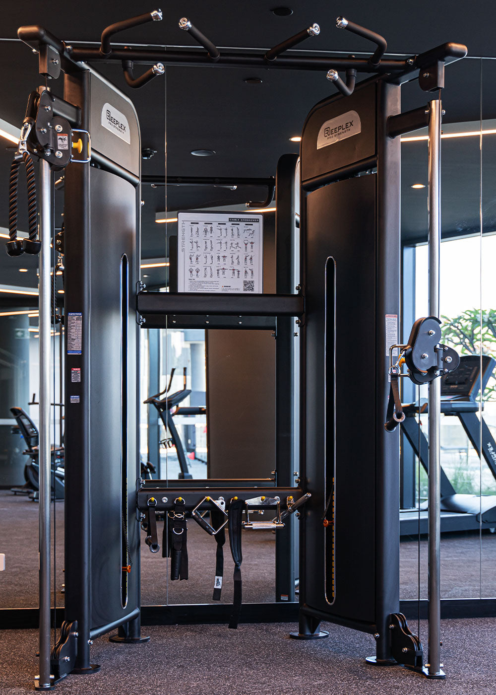 Reeplex Commercial Pin Loaded Functional Trainer offers a steel machined 2 x 150kg weight stack utilizing a sealed bearing pulley system providing responsive cable resistance when selecting from 7.5kg to 150kg.
