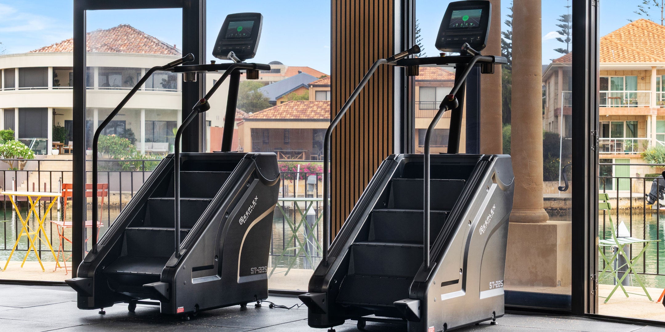 Maximize your workout potential with the Reeplex ST-22S Commercial Stair Climber. Featuring a 10" touchscreen display, this high-quality machine offers top-of-the-line features for ultimate efficiency. Elevate your fitness routine with the Reeplex ST-22S Commercial Stair Climber.
